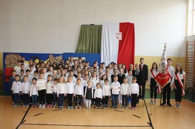 W ramach akcji ,,Szkoła do hymnu" w piątek o godzinie 11.11. nasi uczniowie i nauczyciele odśpiewali hymn państwowy.