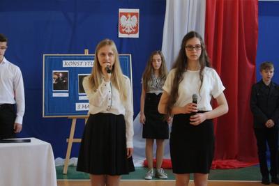 Uczniowie naszej szkoły uczcili obchody 227 rocznicy uchwalenia Ustawy Rządowej z dnia 3 maja. Z tej okazji przygotowali okolicznościową akademię upamiętniającą tamte wydarzenia.