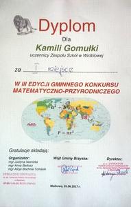 5 czerwca w gimnazjum w Błażkowej odbył się konkurs matematyczno – przyrodniczy. Składał się z dwóch testów. Uczennice naszej szkoły: Kamila Gomułka (kl. IIG), Monika Szęszoł (kl. IIG)i Weronika Źrebiec (kl. IG) zajęły kolejno pierwsze, drugie i czwarte miejsce. Karolina...