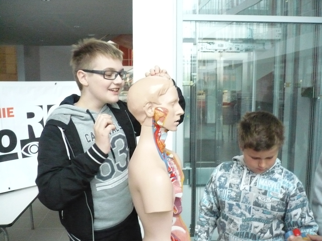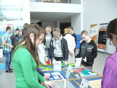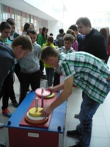 Pokazane eksponaty przybliżyły im wiedzę z matematyki, biologii i fizyki. Wśród prawie 15 stanowisk znajdowały sie zarówno modele anatomiczne jak i te ukazujące wybrane zjawiska fizyczne: ruch falowy, środek ciężkości oraz zagadnienia z optyki. Uczniowie mogli ujrzeć powierzchnie prostokreślne, rozwiązać kilka zagadek geometrycznych, zbudować most wg pomysłu Leonarda da Vinci, czy też sprawdzić twierdzenie Pitagorasa za pomocą kierownicy. Wszystkie eksponaty wymagały aktywności odwiedzających. Wiele z nich to prawdziwe zagadki wymagające logicznego myślenia i wyobraźni, a niektóre także podstawowej wiedzy o otaczającym nas świecie. Wystawa cieszyła się dużym zainteresowaniem uczniów.