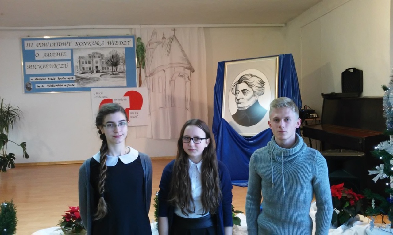 III Powiatowy Konkurs Wiedzy o Adamie Mickiewiczu miał miejsce 11 grudnia 2015r. W Zespole Szkół Społecznych im. Adama Mickiewicza w Jaśle. Podzielono go na trzy kategorie: recytację wiersza, recytację fragmentu "Pana Tadeusza" oraz test wiedzy o Adamie Mickiewiczu. Paulina Źrebiec zajęła I miejsce za recytację monologu Telimeny o jej piesku zagryzionym przez charty, zaś Dominik Maguda zajął II miejsce w konkursie wiedzy o naszym Wieszczu. Świetną recytacją popisała się również Klaudia Piątek, choć nie została ona doceniona przez jury.