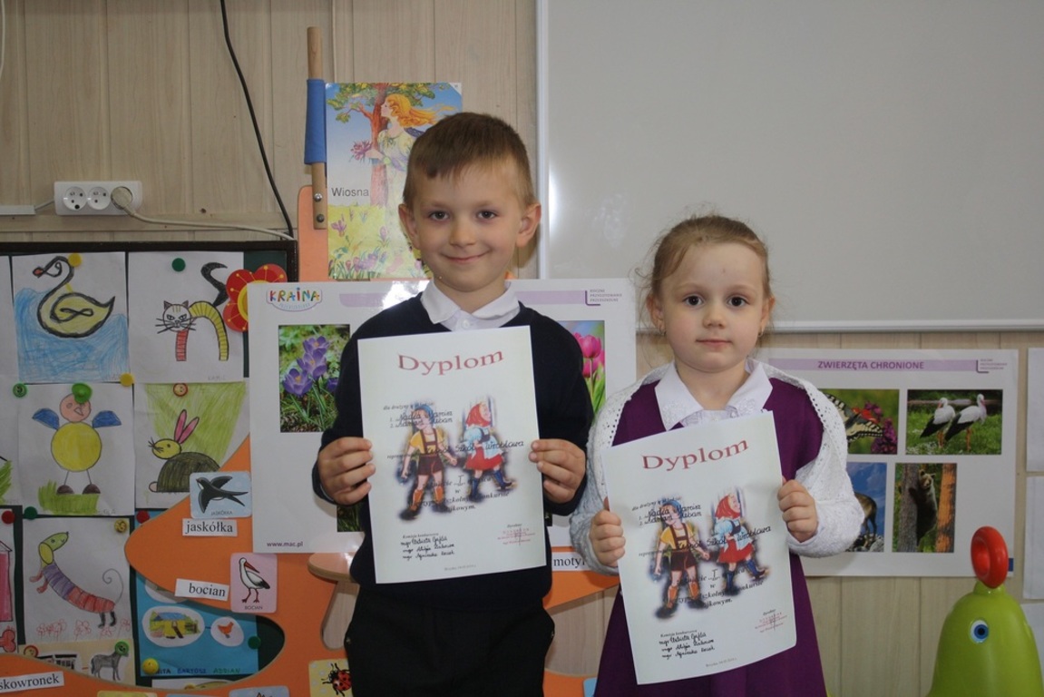 4 maja w Szkole Podstawowej w Brzyskach odbył się konkurs znajomości wybranych baśni dla najmłodszych uczniów szkół z terenu naszej gminy. Drużyna reprezentująca naszą szkołę - Nadia Marcisz i Adrian Pleban - zajęła I miejsce.