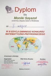 5 czerwca w gimnazjum w Błażkowej odbył się konkurs matematyczno – przyrodniczy. Składał się z dwóch testów. Uczennice naszej szkoły: Kamila Gomułka (kl. IIG), Monika Szęszoł (kl. IIG)i Weronika Źrebiec (kl. IG) zajęły kolejno pierwsze, drugie i czwarte miejsce. Karolina Maguda (kl. IG) otrzymała nagrodę za udział. Gratulujemy