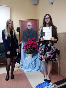 XII Ogólnopolskiej Olimpiady Wiedzy o św. Maksymilianie w Siedlcach. Dziewczyny dostały się do finału dzięki świetnym wynikom uzyskanym
