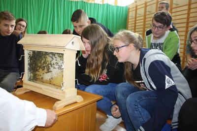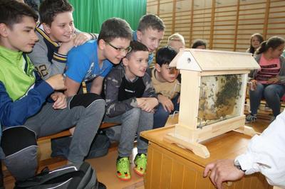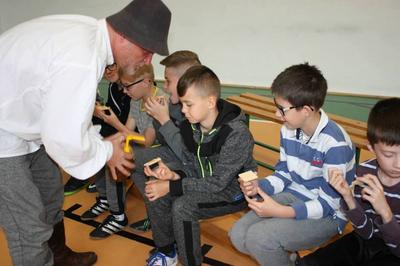 W dniu 24 kwietnia 2018 roku naszą szkołę odwiedził mistrz pszczelarstwa pan Aleksander z pasieki „Boża iskierka”. Warsztaty, w których uczestniczyliśmy dostarczyły nam wielu informacji z życia pszczół i pracy pszczelarza dawniej i dziś. Atrakcją był szklany ul, dzięki czemu dzieci mogły zobaczyć jak pracują pszczoły. Z ciekawostek dowiedzieliśmy się, że pszczoła ma 3 miliony włosów, w trakcie lata żyje tylko 5 tygodni oraz to, że królowa składa od 2-3 tysięcy jaj dziennie. Każdy uczestnik otrzymał certyfikat, słoiczek miodu i nożyk do miodu. Z wonnych plastrów wosku ulepione zostały świece. Dzieci mogły skosztować miodu oraz pyłku kwiatowego. Dzieciom bardzo podobały się warsztaty. Zapraszamy do obejrzenia fotorelacji w naszej galerii.