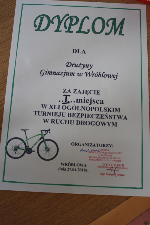 27 kwietnia w Zespole Szkolno-Przedszkolnym w Wróblowej odbył się etap gminny XLI Ogólnopolskiego Turnieju Bezpieczeństwa w Ruchu Drogowym. Wyniki przedstawiają się nastepujaco: