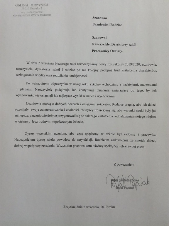 Pan dyrektor odczytał również list Wójta Gminy Brzyska, który nie mógł być obecny na uroczystości (list jest umieszczony w galerii).