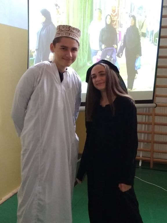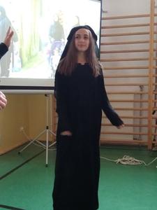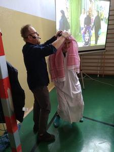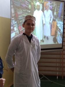 Tym razem uczniowie „odwiedzili” Oman i Zjednoczone Emiraty Arabskie. Poprzez ciekawą opowieść, ubarwioną fotografiami oraz pamiątkami z wyprawy, dzieci przeniosły się na tereny pustynne, gdzie panuje odmienna od naszej przyroda, kultura, obyczaje, a także mentalność społeczeństwa. Te orientalne kraje wzbudziły wśród uczniów niezwykłą ciekawość. Na ulicach spotyka się kobiety ubrane w tradycyjne długie abaje, a mężczyzn w disz dasze. Wielbłądy nadal kupuje się na targach wielbłądów, a kultura i sztuka arabska jest głęboko kultywowana. Uczniowie bardzo chętnie przymierzali tradycyjne dla tej kultury stroje. Wrażenie na nich zrobił Dubaj - słynący z przepychu i luksusu… Dzieci z zaciekawieniem uczestniczyły w spotkaniu i zadawały wiele pytań .