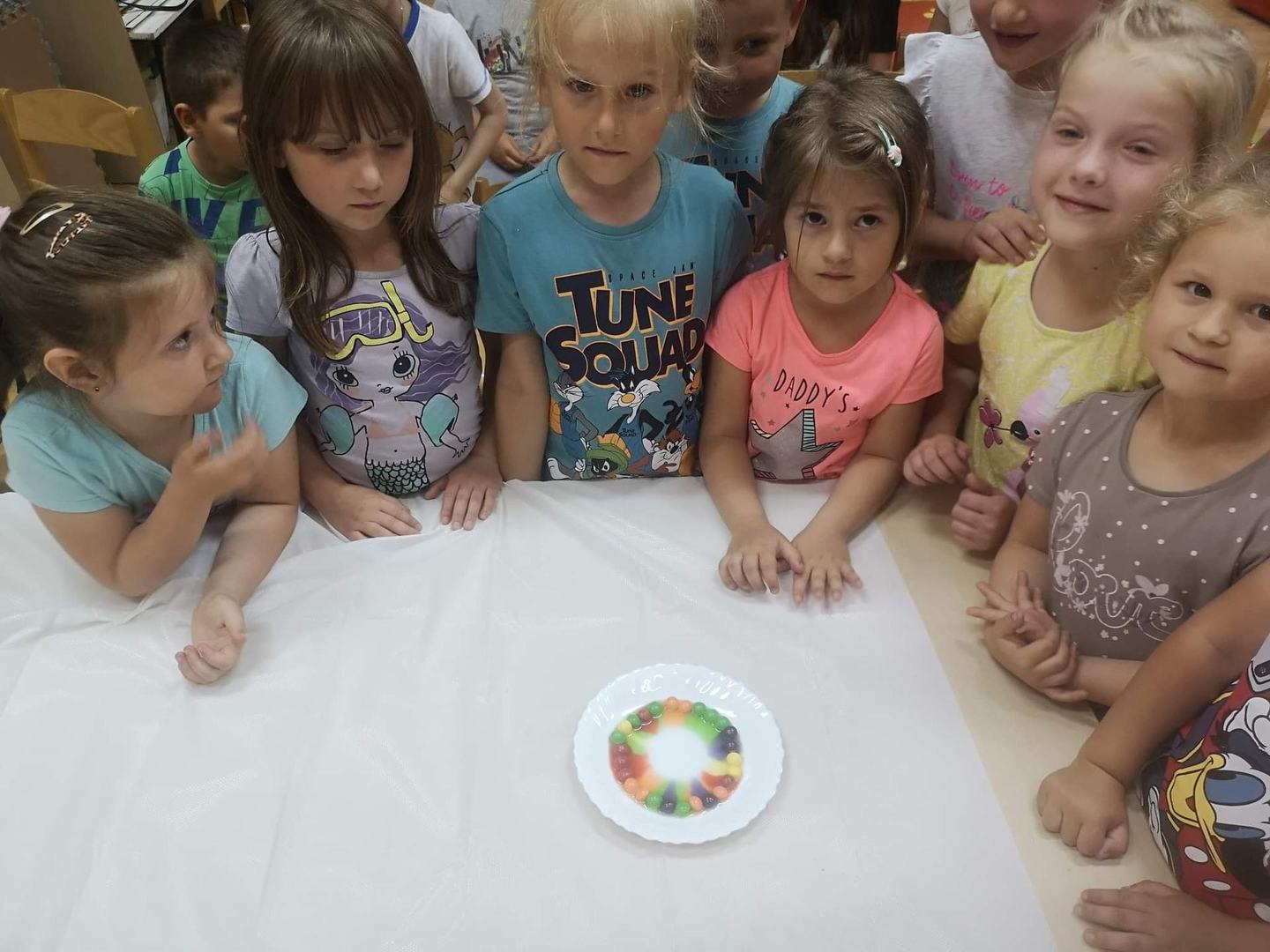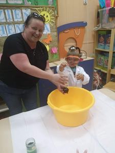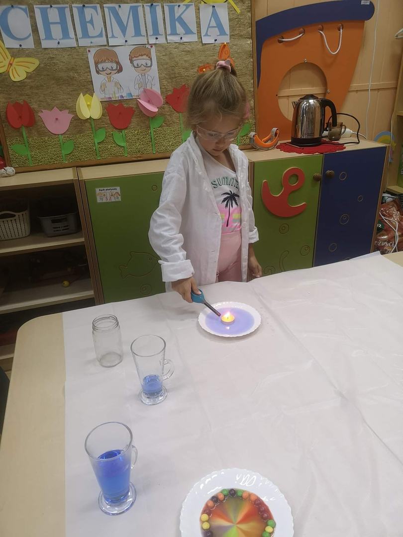 W piątek w naszym przedszkolu obchodziliśmy Dzień Chemika. Przedszkolaki mogły zaobserwować wiele eksperymentów lub przy pomocy nauczyciela wykonać niektóre z nich. Dzieci obserwowały m.in. powstawanie tęczy, lokomotywę, dym bez ognia, znikający atrament, balonik w butelce, doświadczenia z ciśnieniem. Wszyscy byli zachwyceni.