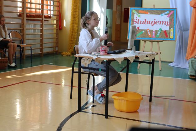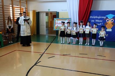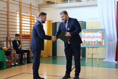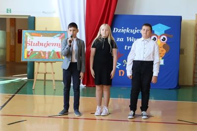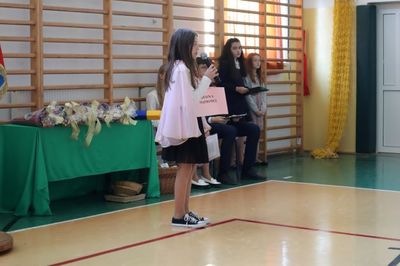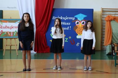 13 października odbyła się w naszej szkole akademia z okazji DEN. Pan wójt Rafał Papciak wręczył wyróżnionym nauczycielom nagrody za osiągnięcia dydaktyczno - wychowawcze. Był to także szczególny dzień dla uczennic z klasy pierwszej. Pasowanie na ucznia miało uroczysty charakter i z pewnością na długo pozostanie w ich pamięci. Ślubowały, że będą dobrymi uczennicami oraz czytelniczkami. Życzymy, by wytrwały w swych przyrzeczeniach!