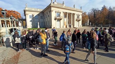 • Łazienki Królewskie, gdzie spacerując w otoczeniu przyrody zobaczyli m.in.: klasycystyczny Pałac na Wyspie, Pałac Myśliwski wybudowany