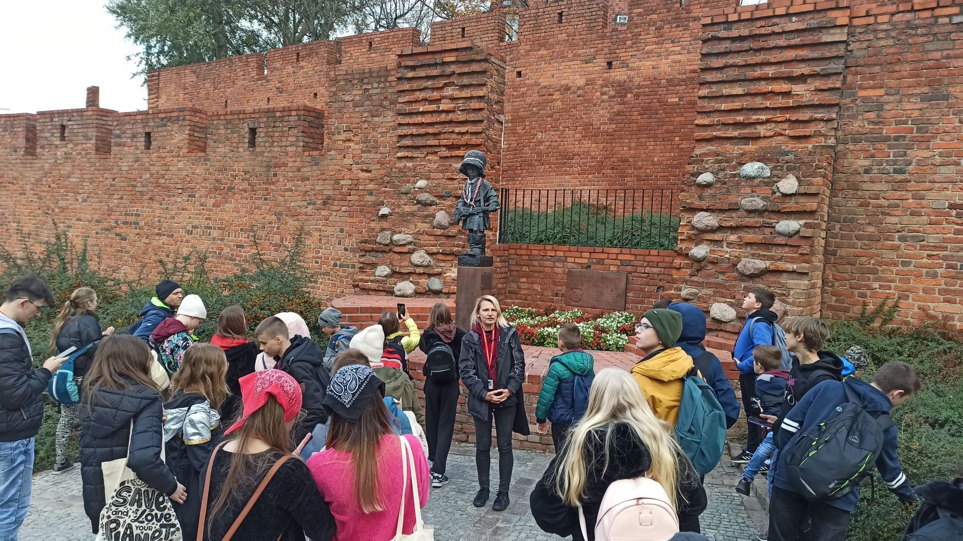 z warszawską Syrenką. Spacerując dalej wzdłuż pozostałości murów miejskich dotarli do Pomnika Małego Powstańca - jednego z symboli powstania warszawskiego.