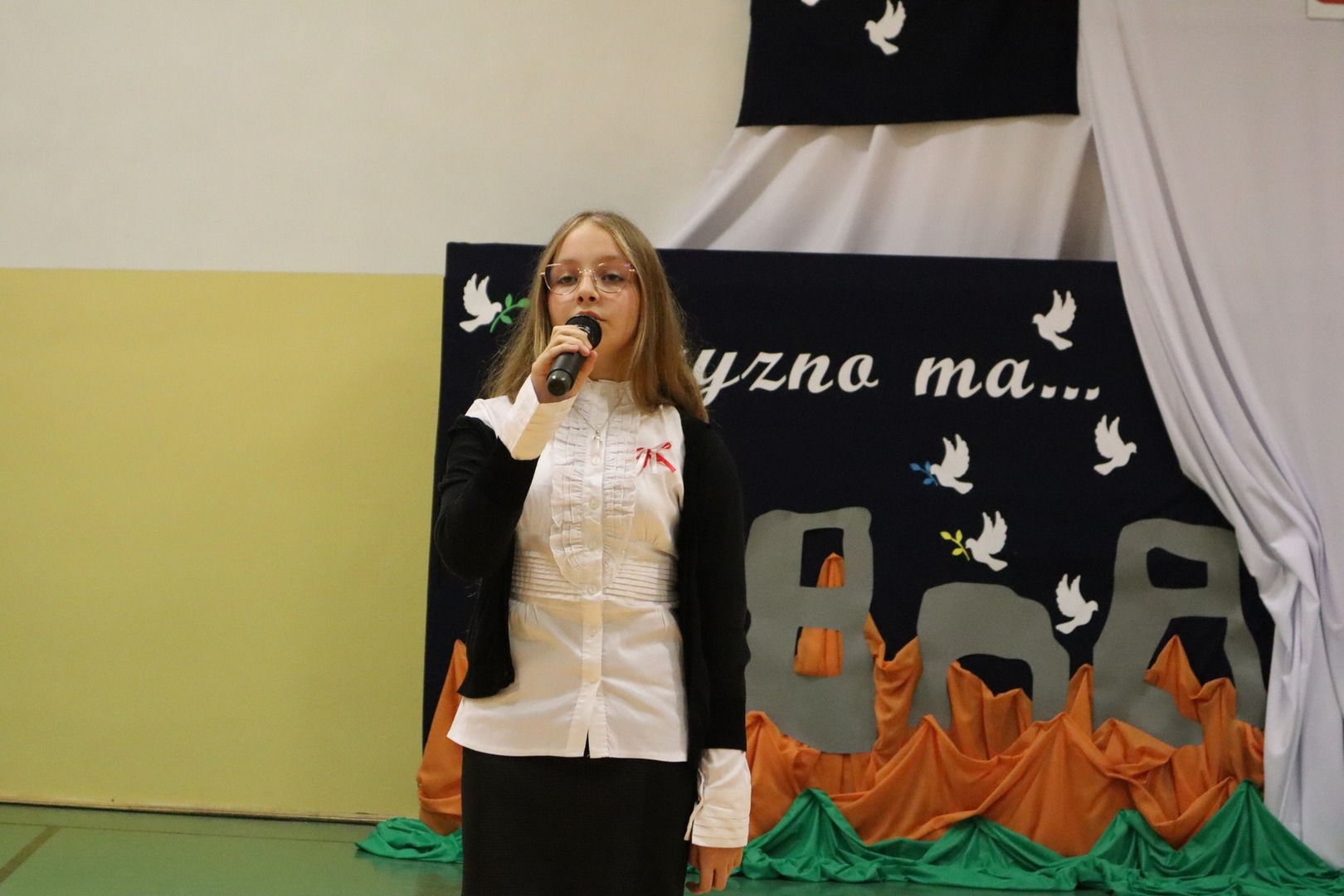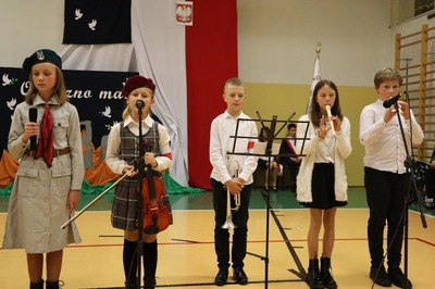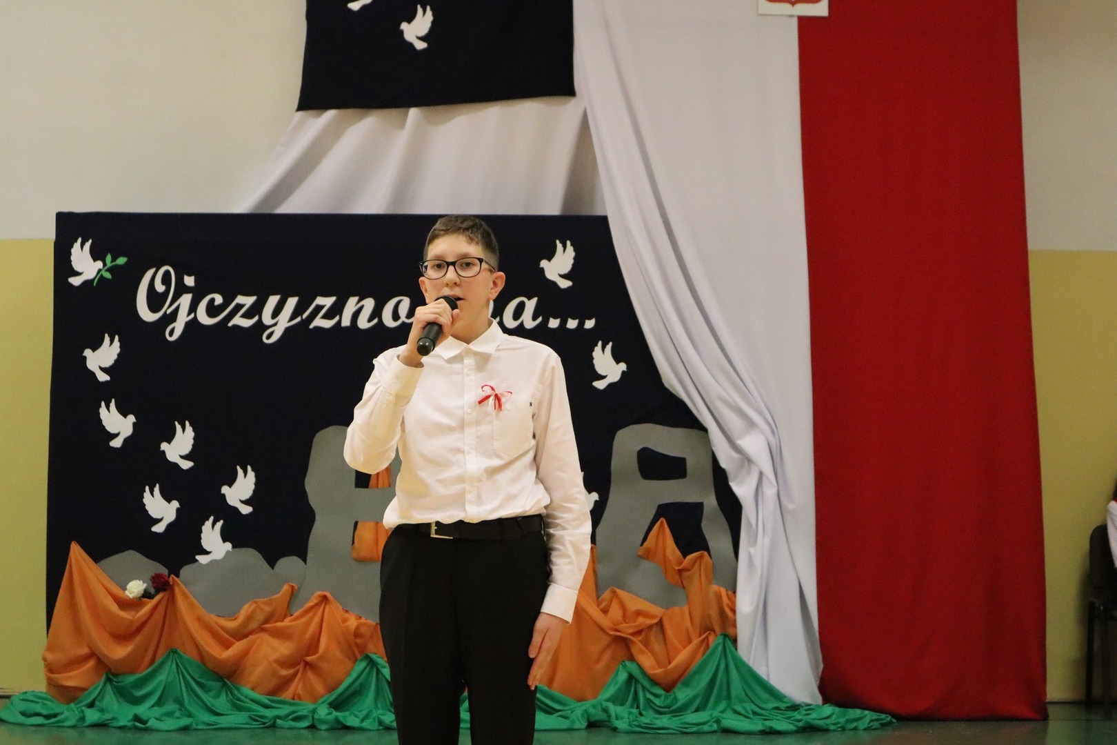 Po dwóch latach przerwy wywołanej pandemią koronawirusa znów mogliśmy wspólnie świętować Odzyskanie Niepodległości na X Gminnym Przeglądzie Poezji i Pieśni Patriotycznej “Ojczyzno ma…” organizowanym przez naszą szkołę. Dziękujemy wszystkim, którzy wzięli udział w tym doniosłym wydarzeniu: młodym artystom – za świetne występy, ich opiekunom – za przygotowanie uczniów do prezentacji, zaproszonym gościom, w szczególności Panu Wójtowi Rafałowi Papciakowi, który objął patronatem naszą uroczystość oraz wszystkim zebranym.