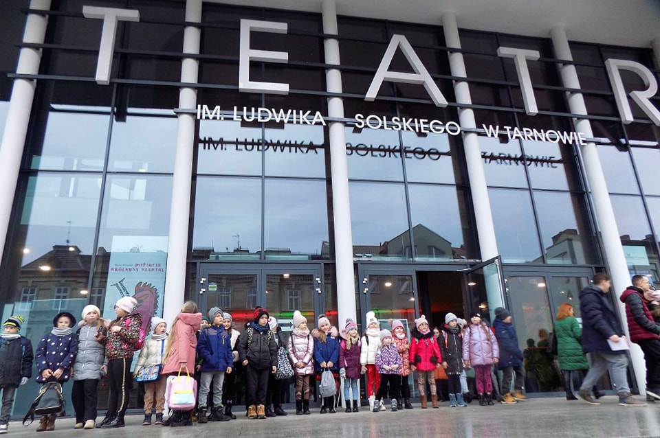 Z okazji Mikołajek uczniowie klas 1-3 wybrali się do Tarnowa na spektakl pt. „Pożarcie Królewny Bluetki” wystawiany na deskach Teatru im. Ludwika Solskiego. Wizyta w miejscu tak bardzo związanym ze sztuką, a także samo przedstawienie wywarły na dzieciach duże wrażenie. Aktorzy zostali nagrodzeni gromkimi brawami, a uczniowie wrócili do domu bogatsi o nowe doświadczenia.