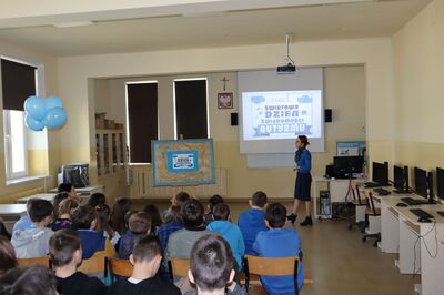 2 kwietnia na całym świecie obchodzony jest Światowy Dzień Świadomości Autyzmu. Jego celem jest propagowanie wiedzy na temat tego zaburzenia. Nasza szkoła również włączyła się w tę akcję. Motywem obchodów jest kolor niebieski, dlatego jego odcienie były dzisiaj dominujące wśród ubrań przedszkolaków, uczniów i nauczycieli.